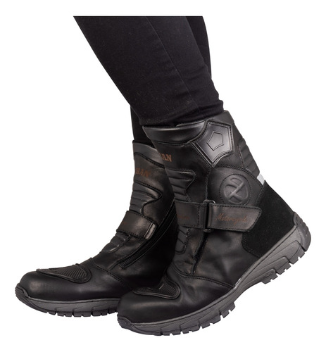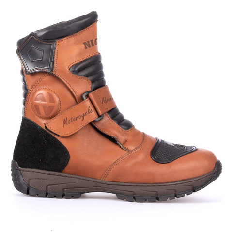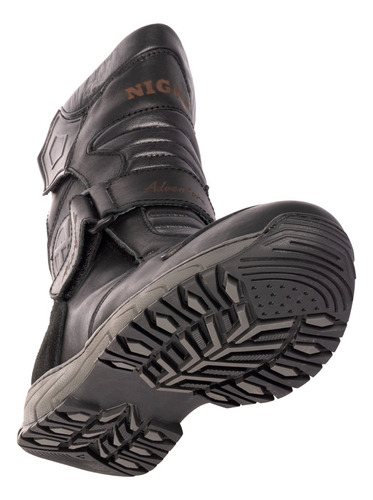 GAONA MOTOS INDUMENTARIA Y ACCESORIOS ------------------------------------------ × Botas para Motociclistas Nighan Modelo Adventure × Confeccionadas en cuero vacuno de excelente terminación × Suelas de treeking pegadas y cosidas en su totalidad × Plantillas de 10mm de espesor (espumadas en alta densidad) × Forrados internamente en set de poliester muy suave × Pasacambios de goma para evitar el desgaste del cuero × Reflex en los talones × Protecciones en puntera, tobillos, talones y empeines × Talles del 39 al 45 × Colores Negro y marrón ------------------------------------------ Contamos con local a la calle en el barrio de Flores, Capital Federal. Por la zona de Av. Gaona y Av. Nazca. Nuestros horarios de atención son de Lunes a Viernes de 10:00 a 18:00. Sábados de 10:00 a 14:00. DOMINGOS Y FERIADOS CERRADO. ------------------------------------------ FORMAS DE ENVÍO: -Mercado envíos a todo el país (excepto Tierra del Fuego) -Motomensajeria (CABA y zonas de GBA) -